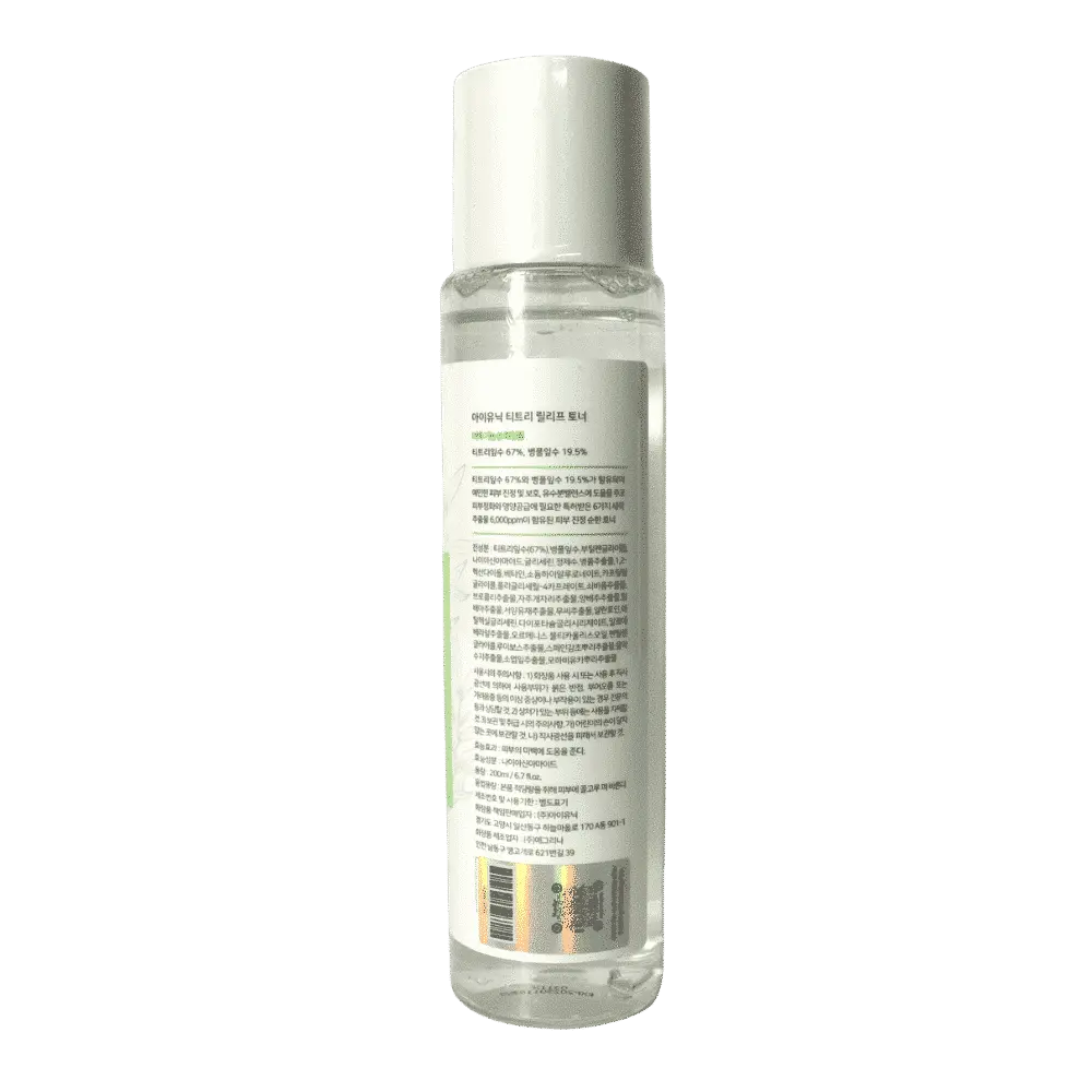 Shield your skin from blemishes with the transformative Iunik Tea Tree Relief Toner – a skincare essential enriched with a potent blend of nature’s remedies. Boasting 67% tea tree extract, 20% Cica Extract, and 1,000ppm purslane extract, this toner offers a comprehensive solution for aggravated skin.