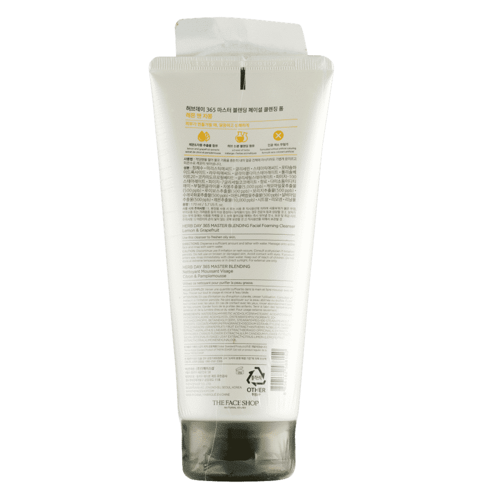 The Face Shop Herb Day 365 Cleansing Foam in Lemon & Grapefruit is a refreshing and invigorating facial cleanser designed to provide effective cleansing while infusing your skin with the refreshing scents of lemon and grapefruit.