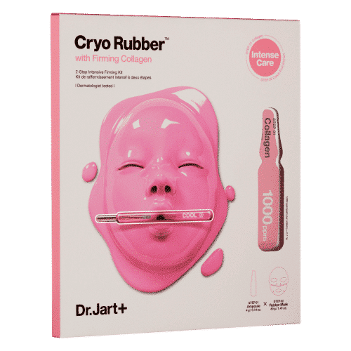 Dr. Jart+ Cryo Rubber with Firming Collagen is a firming two-step rubber mask that is for boosting blood flow and fast absorption of powerful active ingredients for a radiant and healthy-looking complexion. This two-step process contains a concentrated ampoule gel-type serum which is packed with active ingredients a prebiotic complex and a flexible rubber mask which is made up of naturally derived algae and clay to cool and condition the skin. It also helps in decreasing the skin’s temperature to help increase blood circulation for the absorption of ingredients deeper into the skin. The flexible and hydrating rubber mask packs the skin to prevent active ingredients from evaporating and allow deep penetration. This rubber mask has Firming Collagen which helps reduce fine lines and wrinkles and restore firmness to the skin and also contains Carob Fruit Extract which encourages the skin’s natural collagen production. This Mask is recommended for all skin types for restoring firmness, elasticity, fine lines & wrinkles, and puffiness.